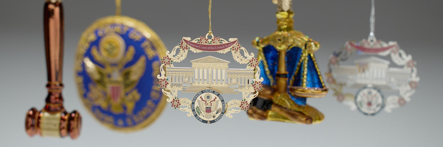 Get into the holiday spirit with our Supreme Court-inspired products, featuring exclusive Historical Society ornaments and holiday cards. Celebrate the festive season while embodying your respect for justice.