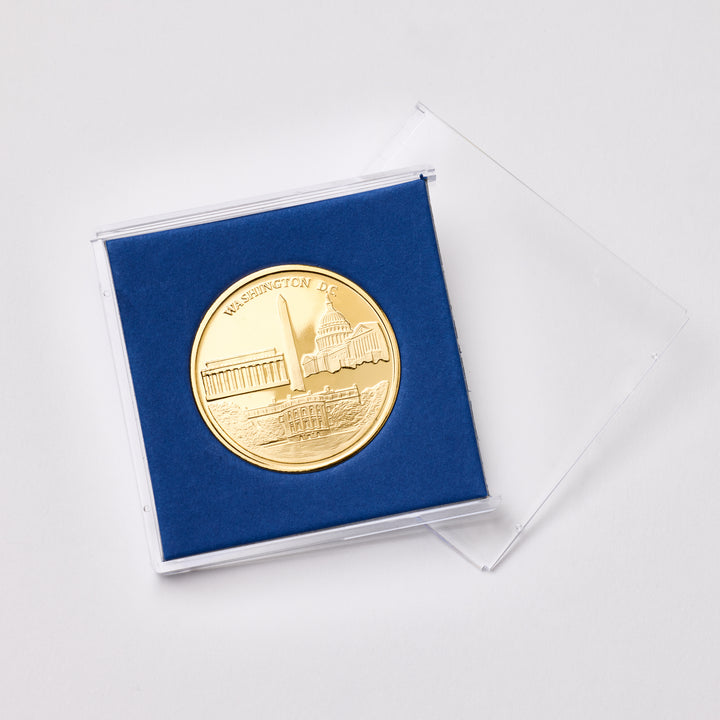 The John Marshall Medallion coin is a tribute to Chief Justice John Marshall. This exquisite coin is a 24 kt. Gold-plated medallion, adorned with a depiction of John Marshall on the front and the Supreme Court Building on the reverse. It serves as a symbol of Marshall's influential legacy and the enduring significance of the Supreme Court.